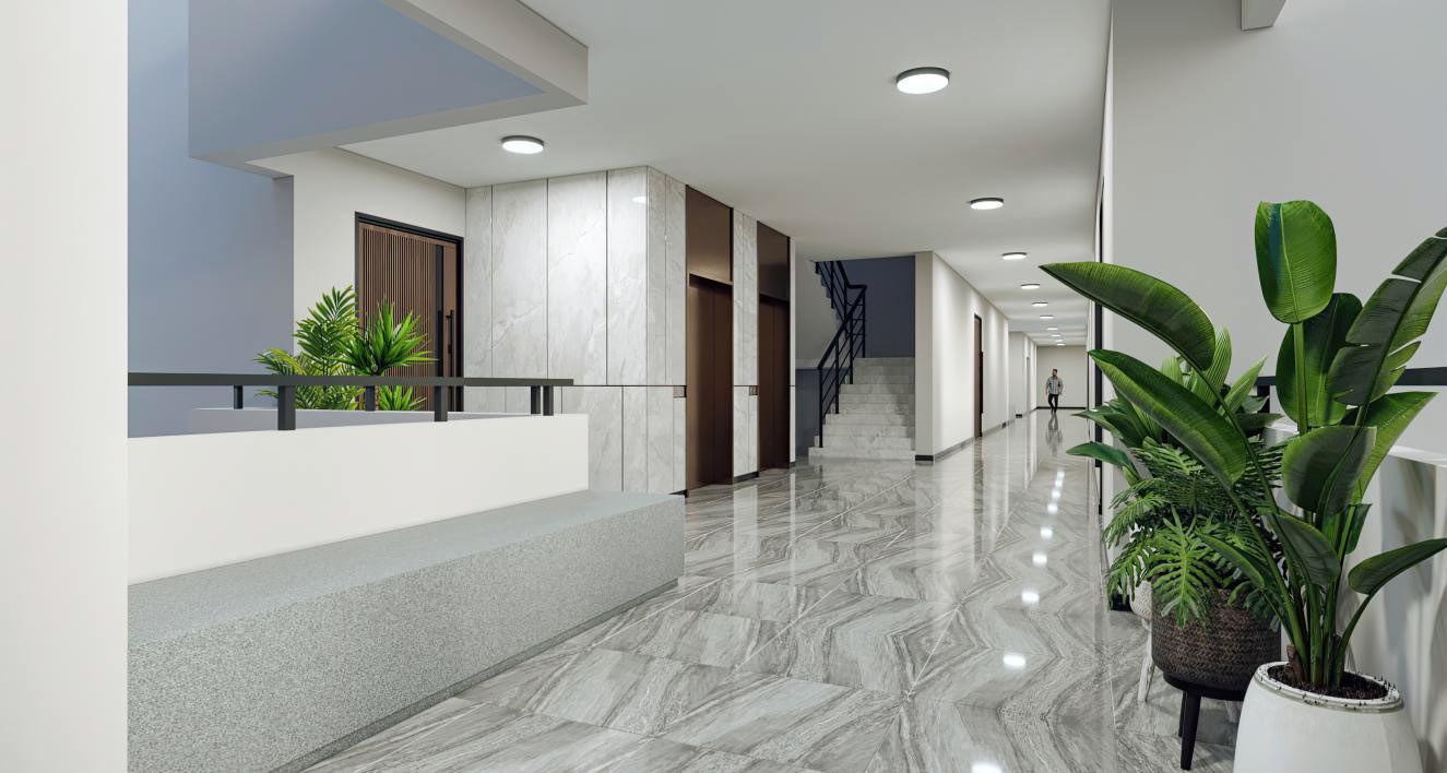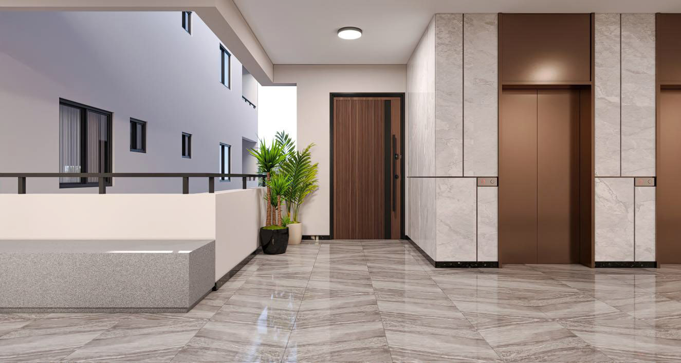 Common Spaces (withing flat) - Glazed vitrified tiles of reputed make with spacer joint.